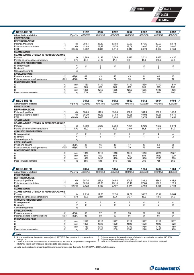 1 Acqua scambiatore freddo lato utenza (in/out) 12°C/7°C; Temperatura di condensazione
