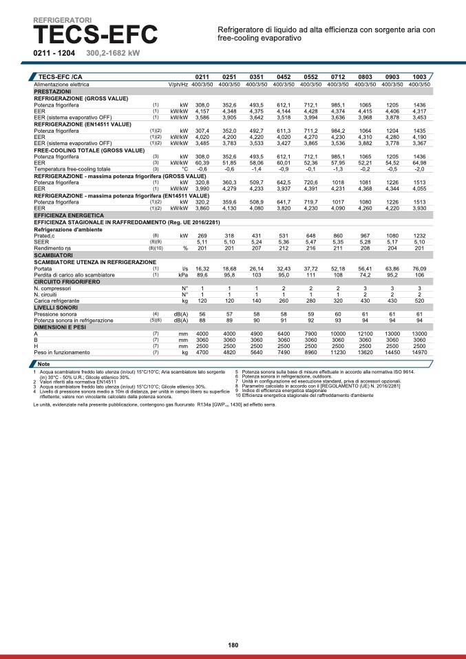 Le unità, evidenziate nella presente pubblicazione, contengono gas fluorurato R134a [GWP