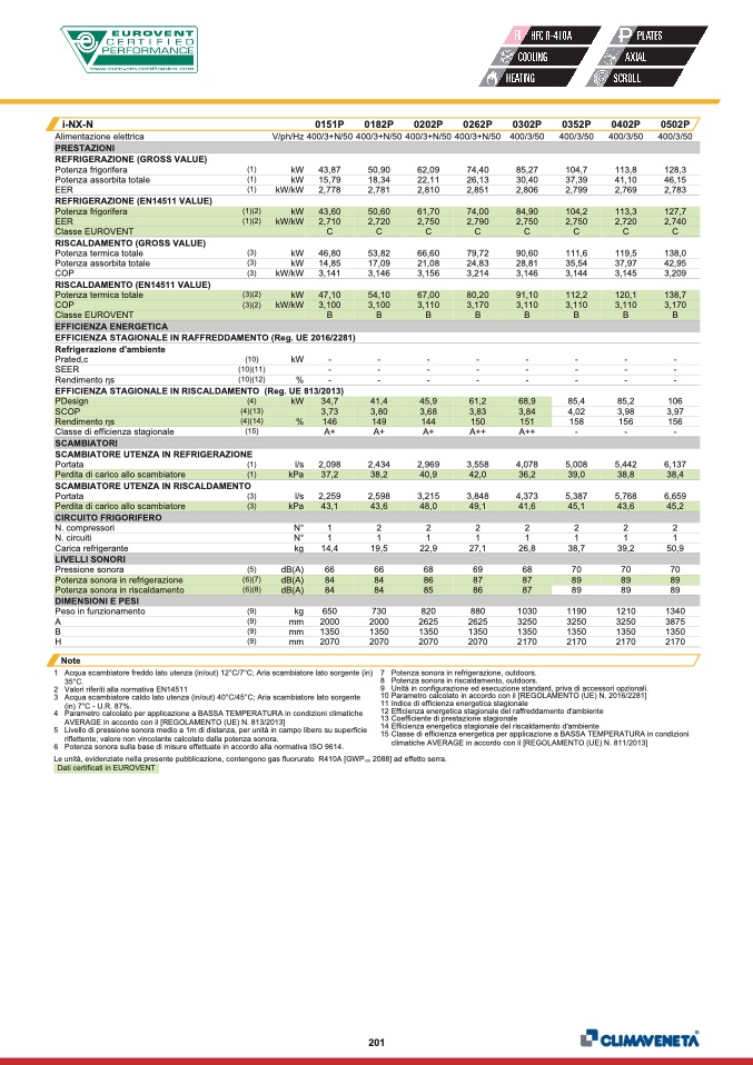 Le unità, evidenziate nella presente pubblicazione, contengono gas fluorurato R410A [GWP