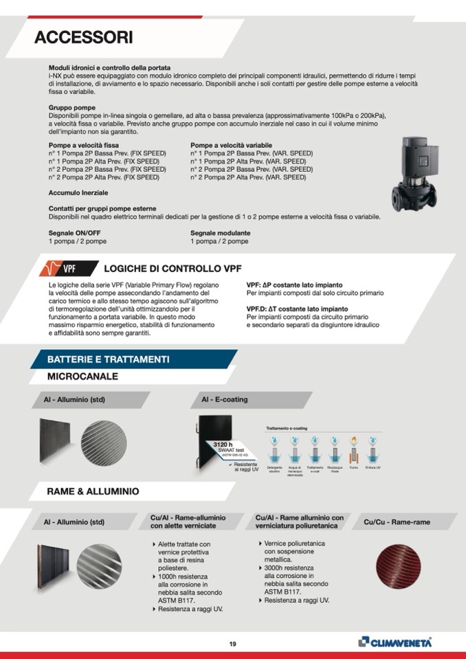 a velocità fissa o variabile. Previsto anche gruppo pompe con accumulo inerziale nel caso in cui il volume minimo