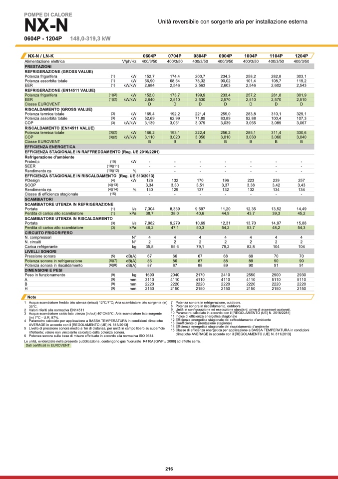 Dati certificati in EUROVENT