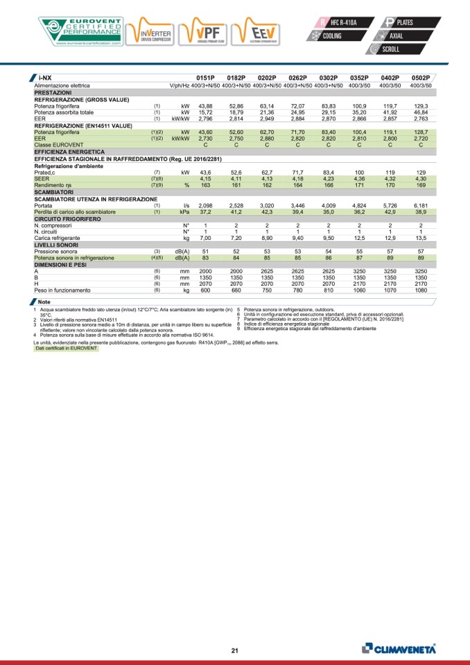 1 Acqua scambiatore freddo lato utenza (in/out) 12°C/7°C; Aria scambiatore lato sorgente (in)