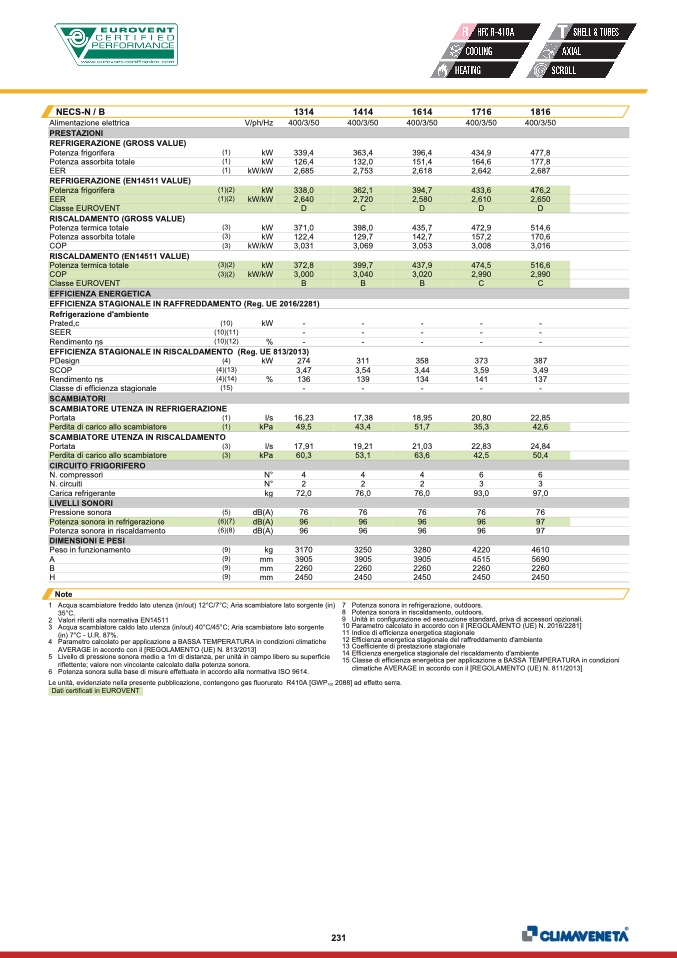 1 Acqua scambiatore freddo lato utenza (in/out) 12°C/7°C; Aria scambiatore lato sorgente (in)