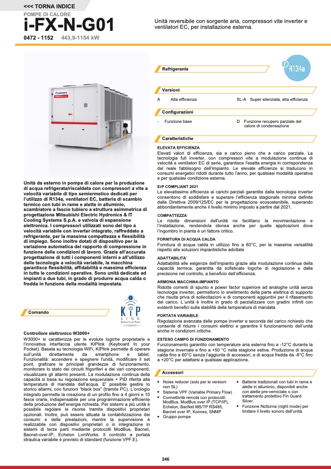 Unità reversibile con sorgente aria, compressori vite inverter e