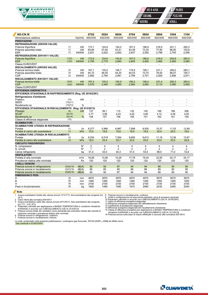 1 Acqua scambiatore freddo lato utenza (in/out) 12°C/7°C; Aria scambiatore lato sorgente (in)