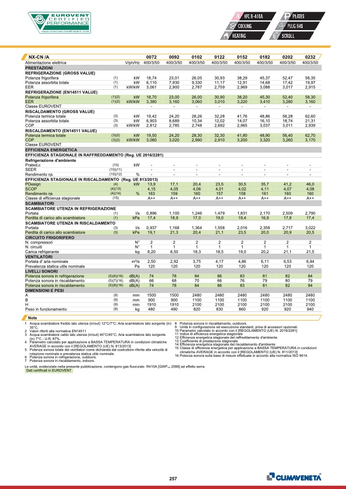 Dati certificati in EUROVENT