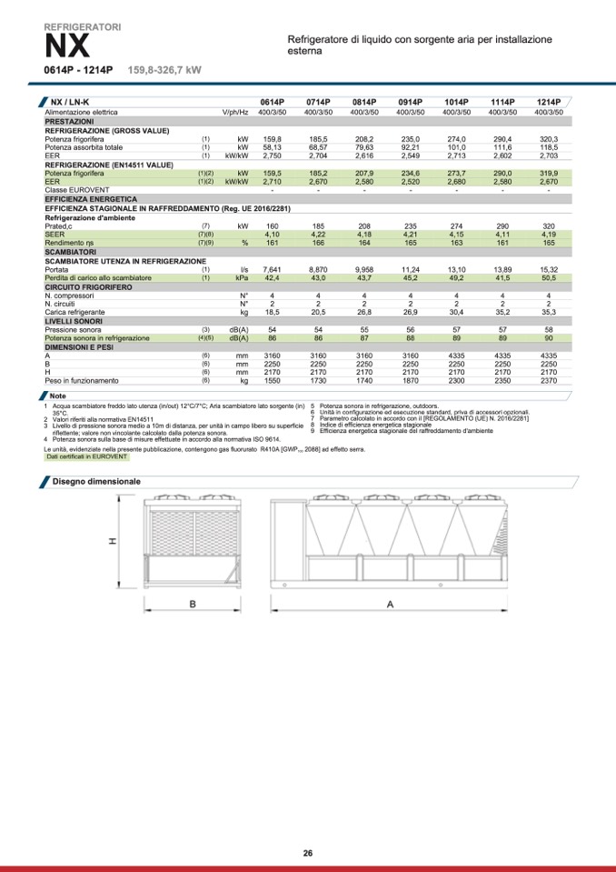 1 Acqua scambiatore freddo lato utenza (in/out) 12°C/7°C; Aria scambiatore lato sorgente (in) 5