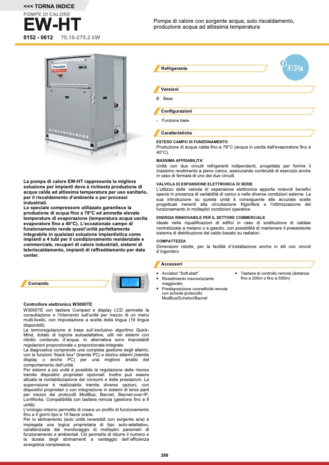 Pompe di calore con sorgente acqua, solo riscaldamento,