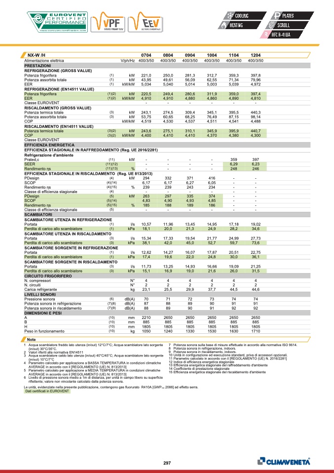 1 Acqua scambiatore freddo lato utenza (in/out) 12°C/7°C; Acqua scambiatore lato sorgente