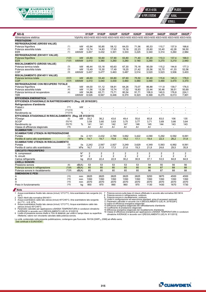 Dati certificati in EUROVENT
