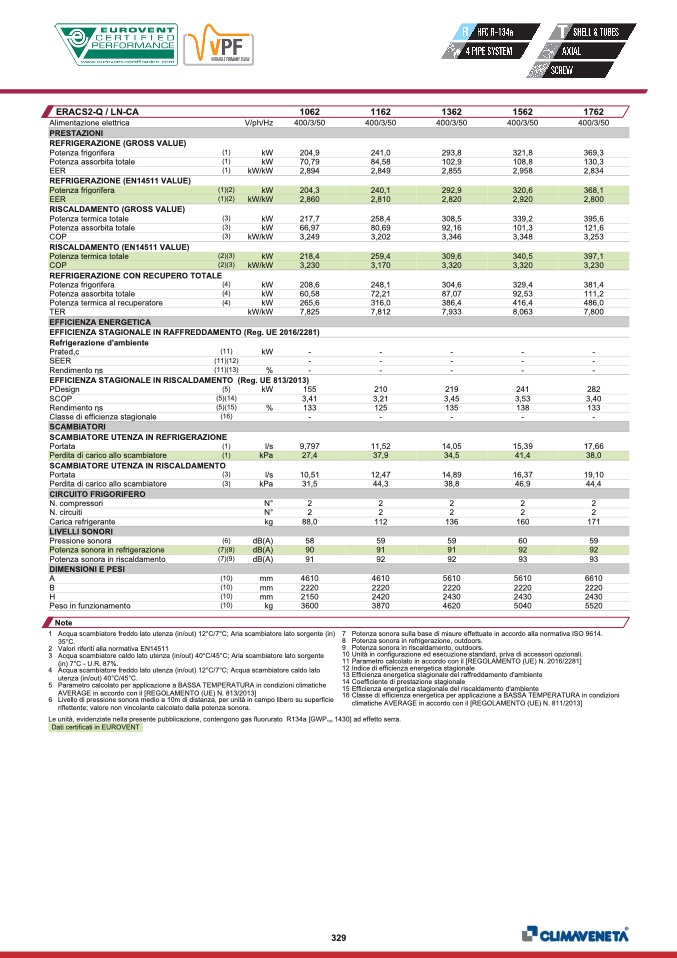 Dati certificati in EUROVENT