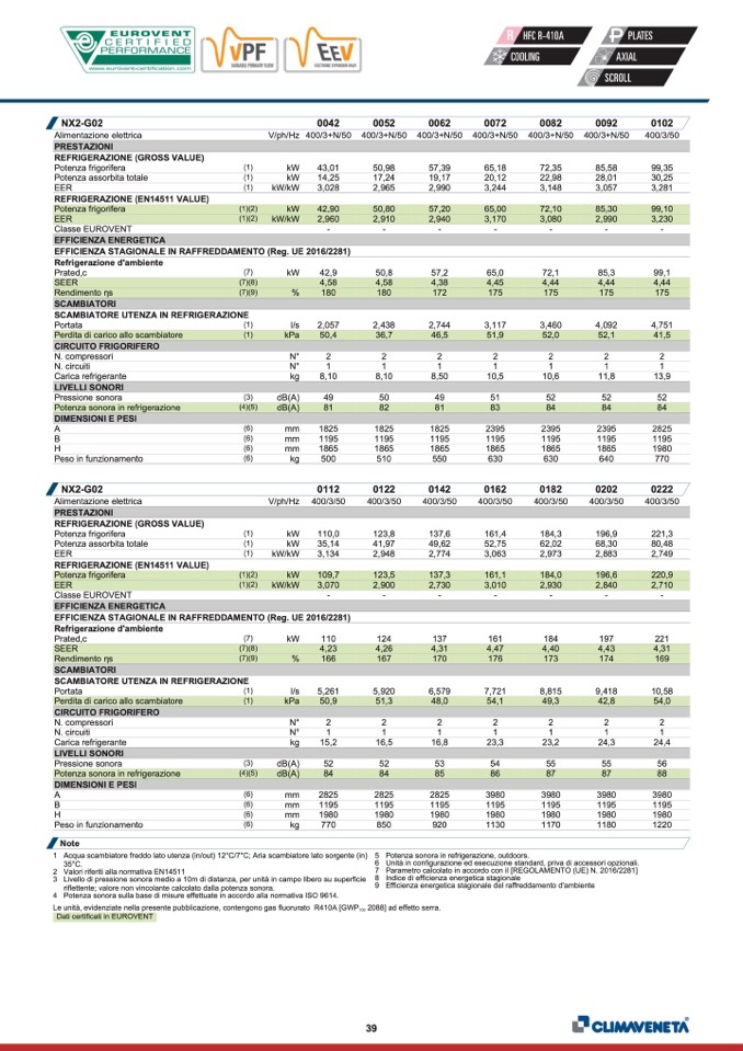 1 Acqua scambiatore freddo lato utenza (in/out) 12°C/7°C; Aria scambiatore lato sorgente (in) 5