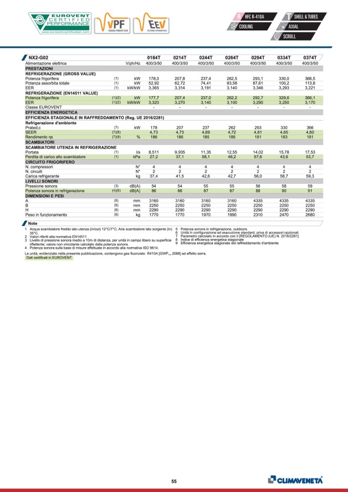 1 Acqua scambiatore freddo lato utenza (in/out) 12°C/7°C; Aria scambiatore lato sorgente (in) 5