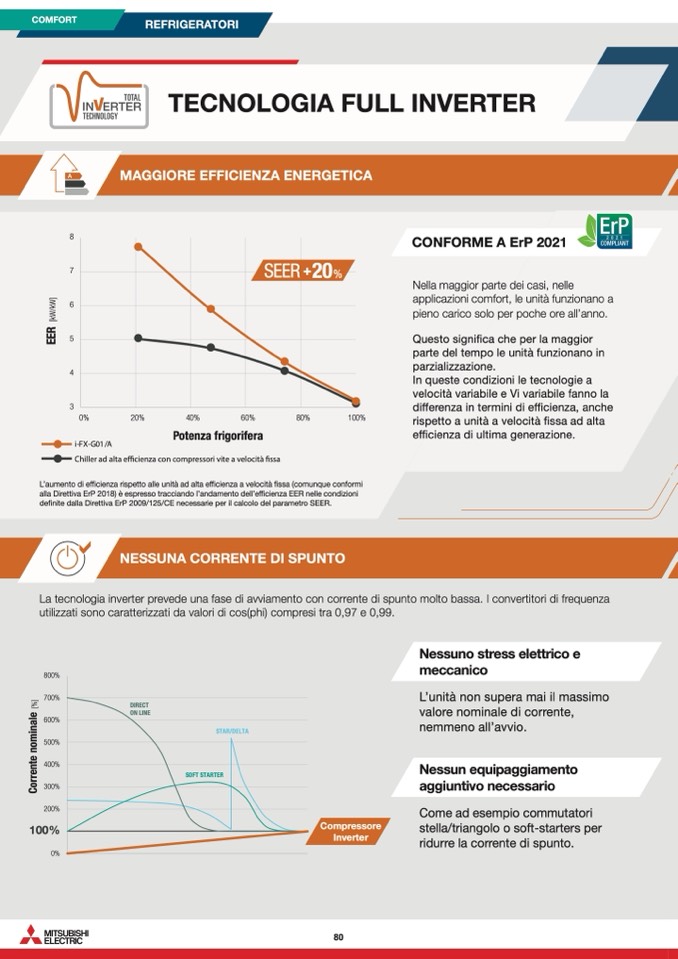La tecnologia inverter prevede una fase di avviamento con corrente di spunto molto bassa. I convertitori di frequenza