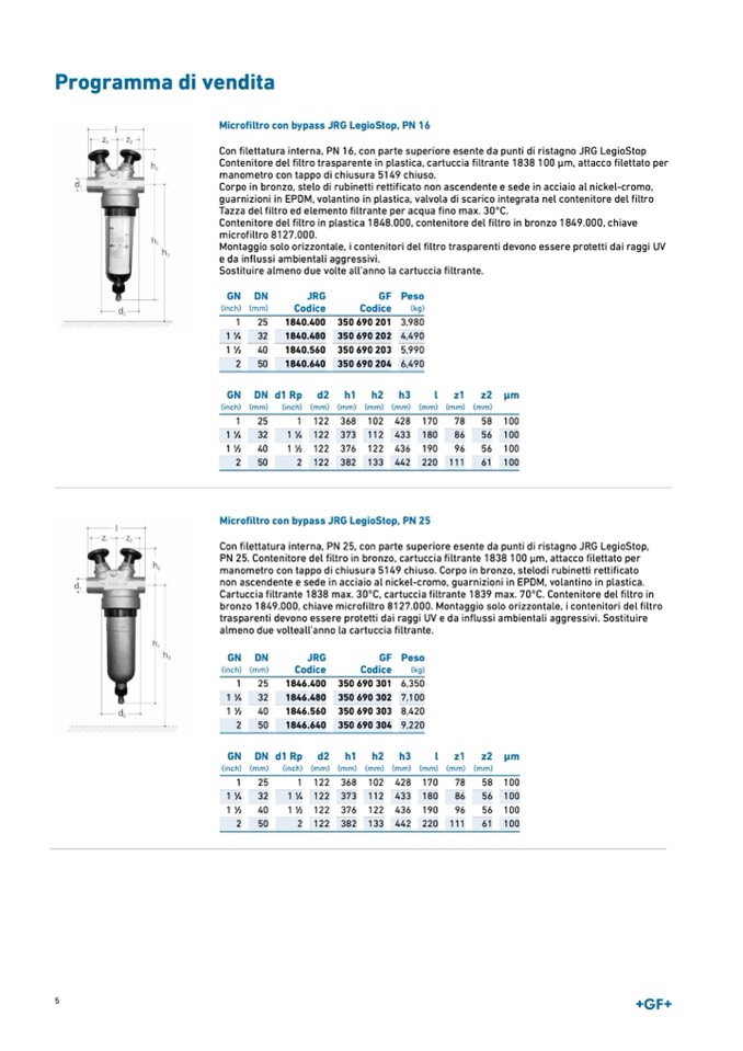 bronzo 1849.000, chiave microfiltro 8127.000. Montaggio solo orizzontale, i contenitori del filtro