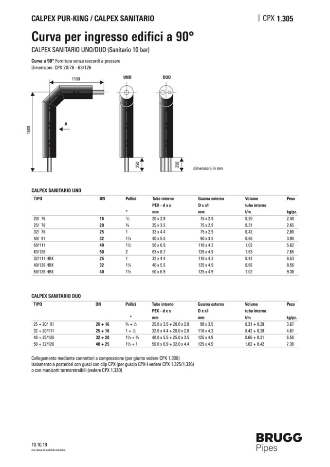 Collegamento mediante connettori a compressione (per giunto vedere CPX 1.390)