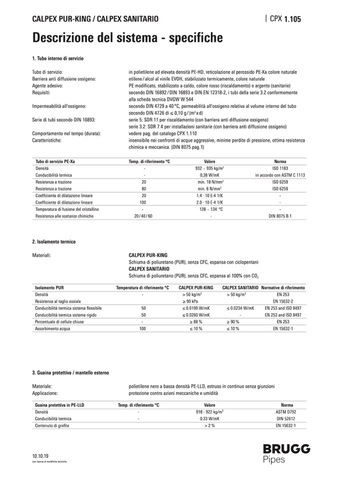 in polietilene ad elevata densità PE-HD, reticolazione al perossido PE-Xa colore naturale