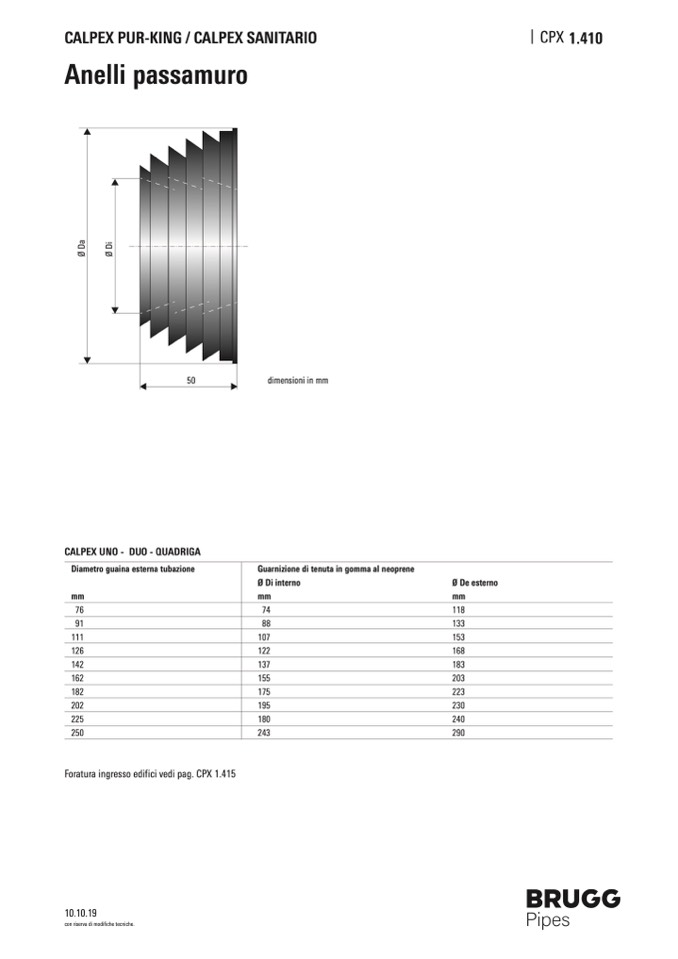 Foratura ingresso edifici vedi pag. CPX 1.415
