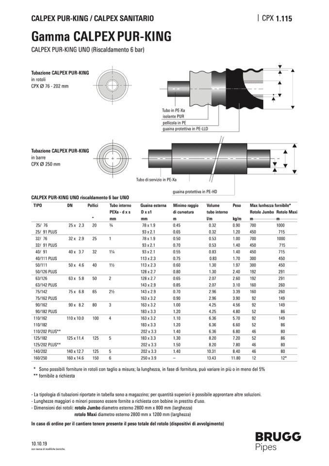 - La tipologia di tubazioni riportate in tabella sono a magazzino; per quantità superiori è possibile approntare altre soluzioni.