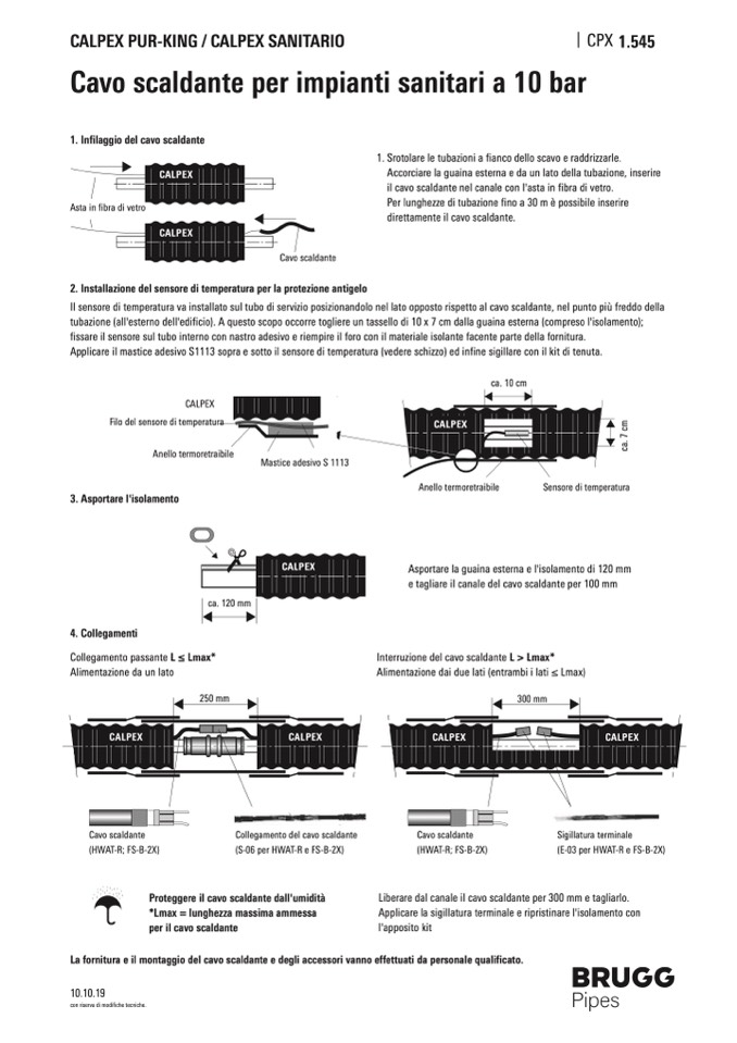 La fornitura e il montaggio del cavo scaldante e degli accessori vanno effettuati da personale qualificato.