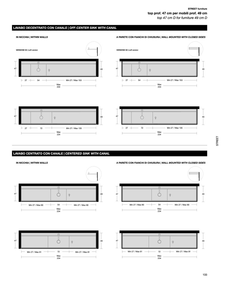 LAVABO DECENTRATO CON CANALE | OFF-CENTER SINK WITH CANAL