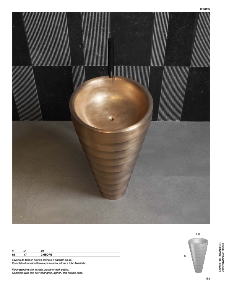 Lavabo da terra in bronzo satinato o patinato scuro.