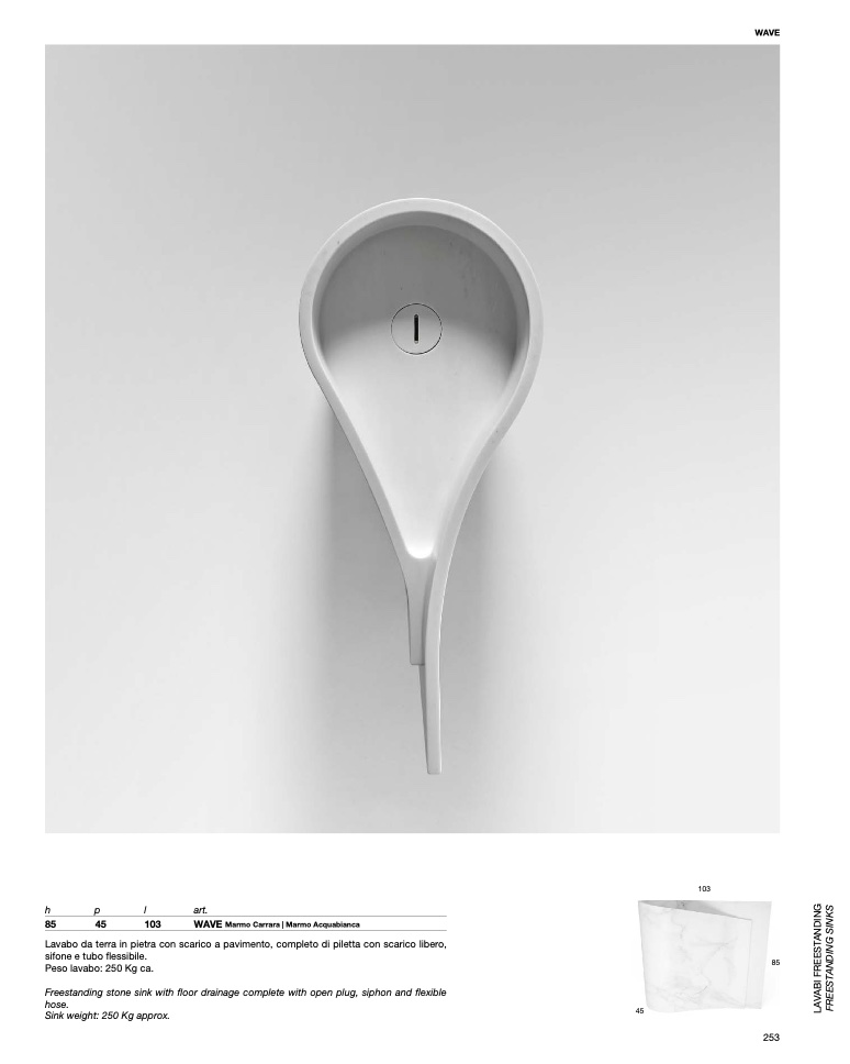 Peso lavabo: 250 Kg ca.