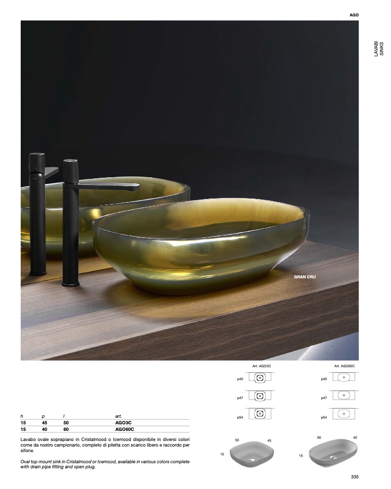 Oval top mount sink in Cristalmood or Icemood, available in various colors complete