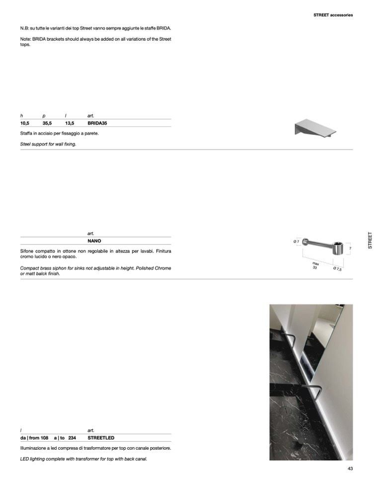N.B: su tutte le varianti dei top Street vanno sempre aggiunte le staffe BRIDA.