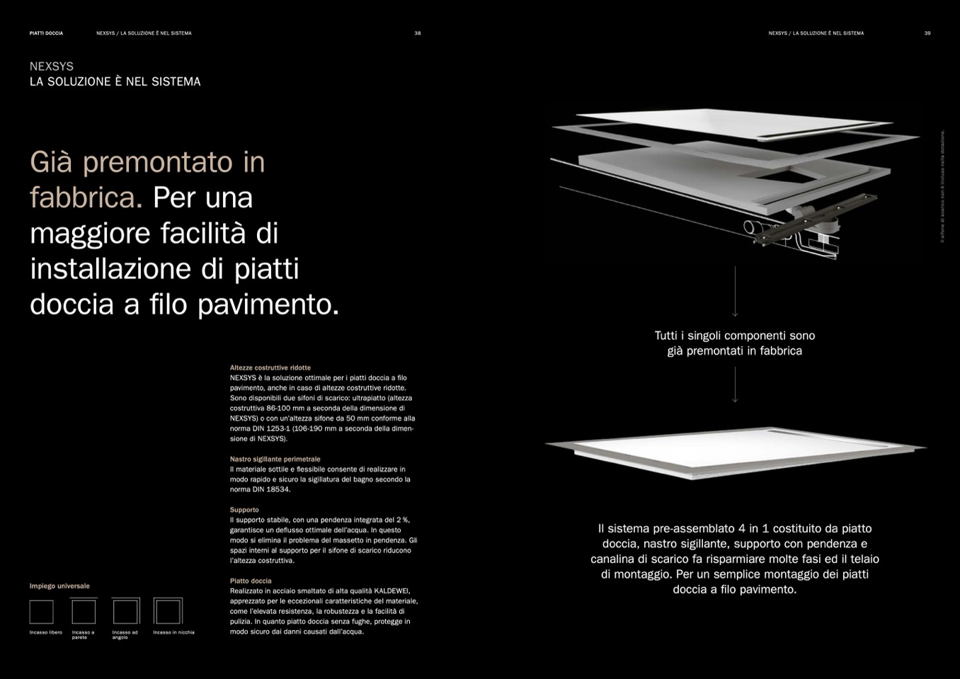 NEXSYS è la soluzione ottimale per i piatti doccia a filo