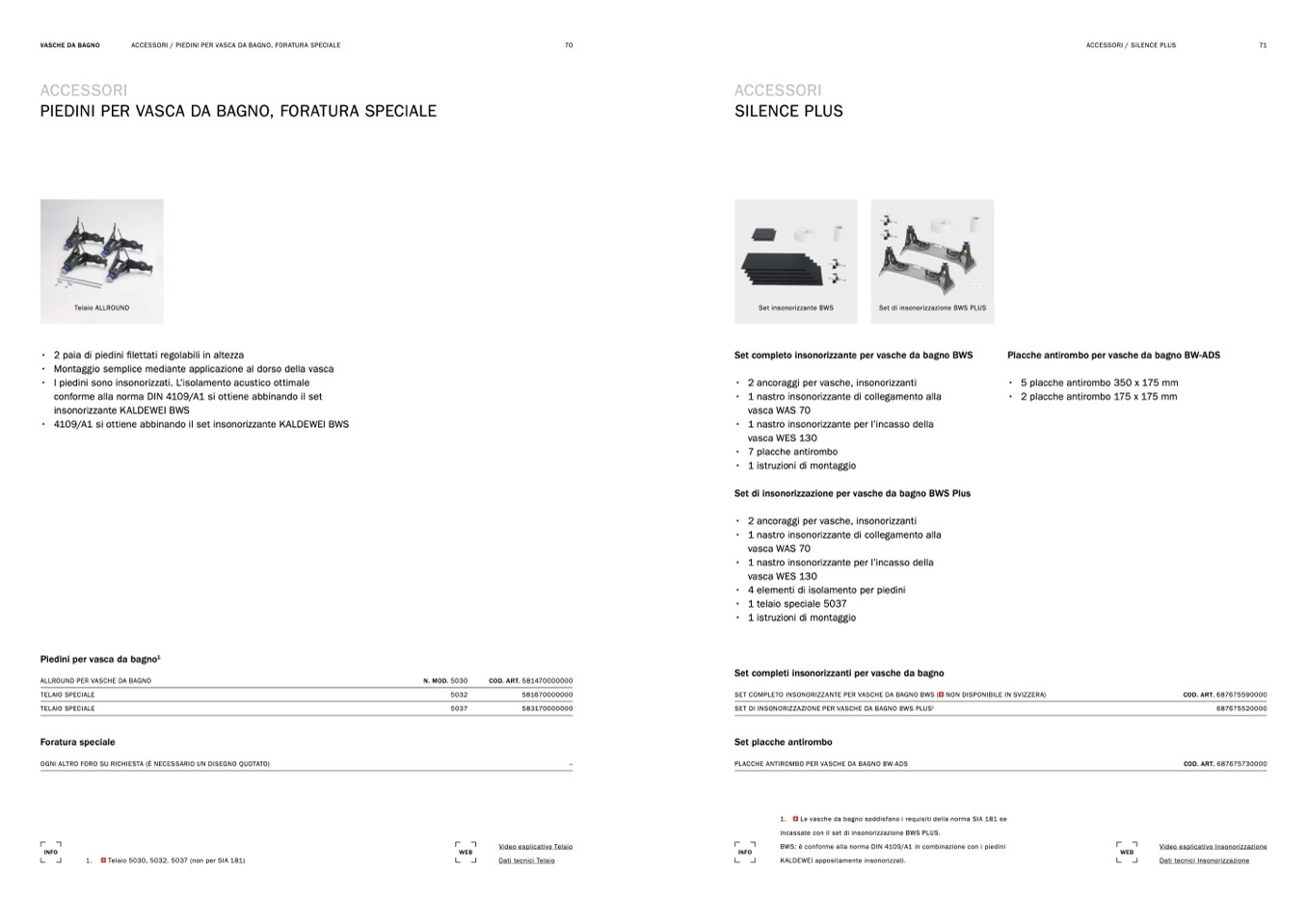 ACCESSORI / PIEDINI PER VASCA DA BAGNO, FORATURA SPECIALE
