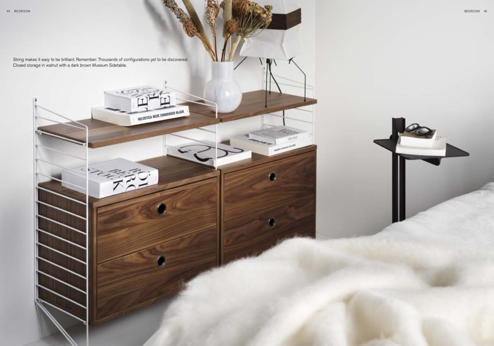 Closed storage in walnut with a dark brown Museum Sidetable.