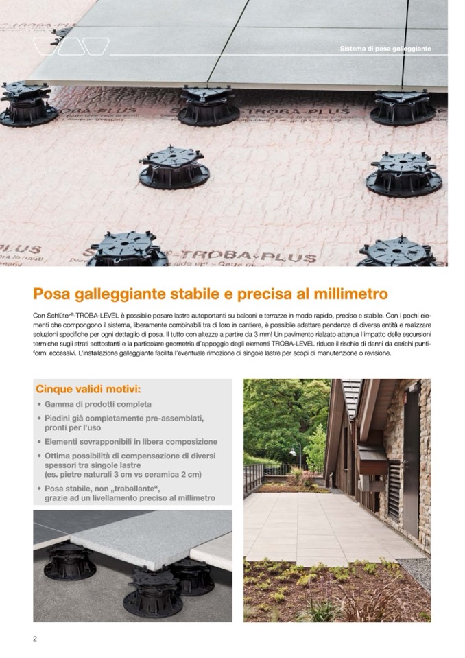 -TROBA-LEVEL è possibile posare lastre autoportanti su balconi e terrazze in modo rapido, preciso e stabile. Con i pochi ele-