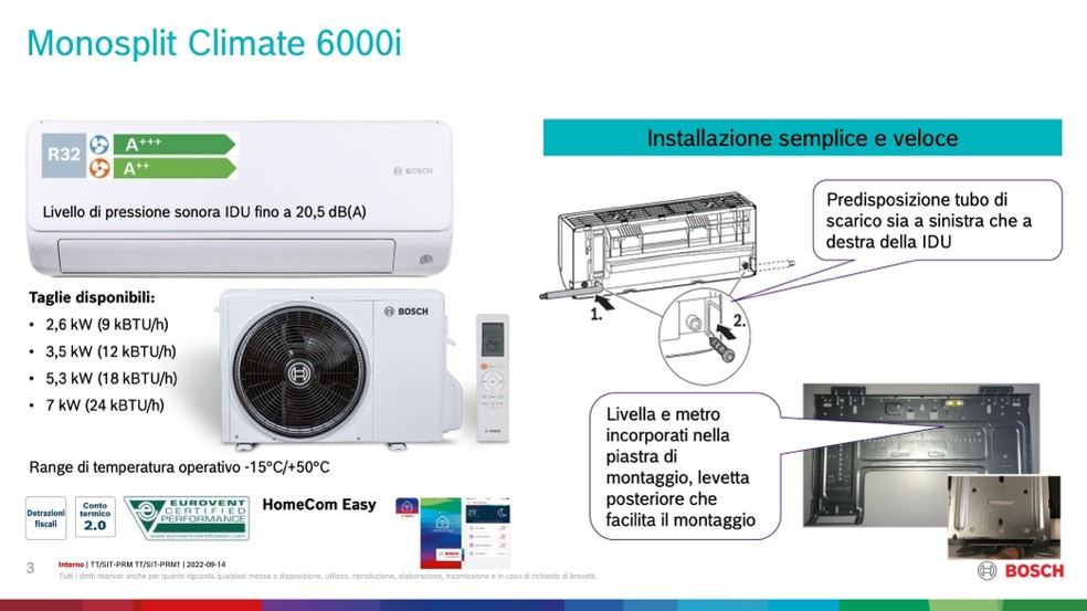 Livello di pressione sonora IDU fino a 20,5 dB(A)