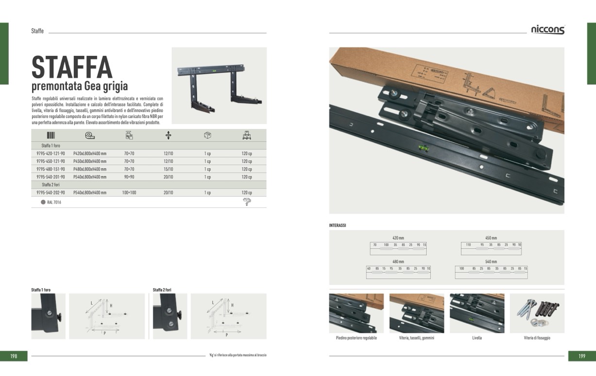 Staffe regolabili universali realizzate in lamiera elettrozincata e verniciata con