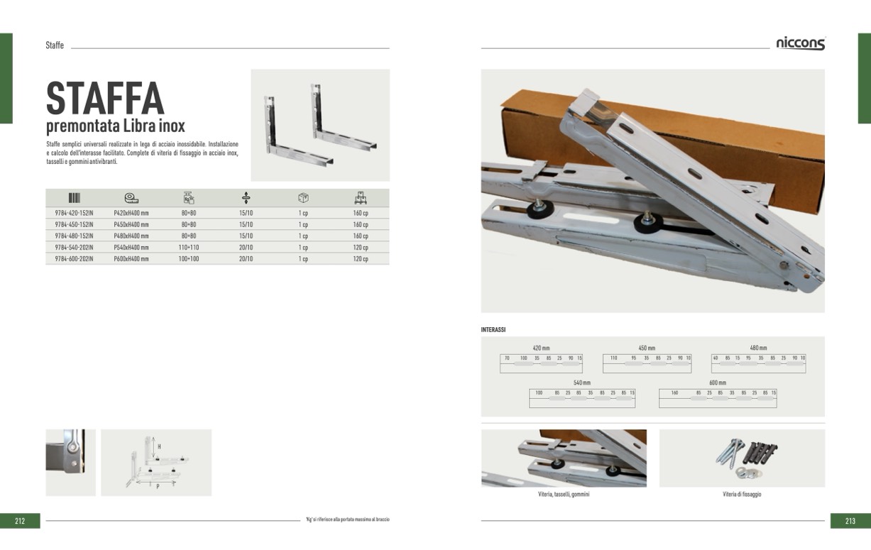 e calcolo dell’interasse facilitato. Complete di viteria di fissaggio in acciaio inox,