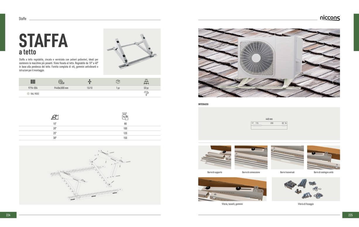 Staffa a tetto regolabile, zincata e verniciata con polveri poliesteri, ideali per