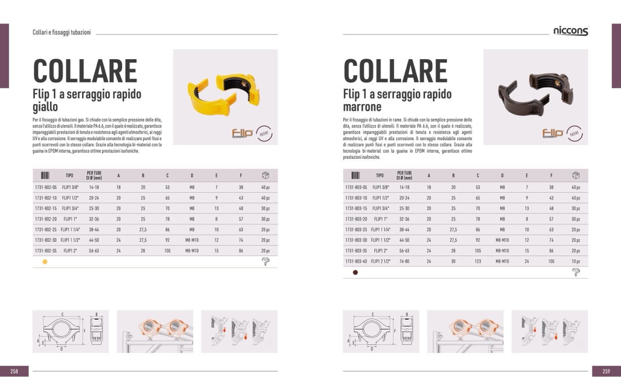 Per il fissaggio di tubazioni in rame. Si chiude con la semplice pressione delle