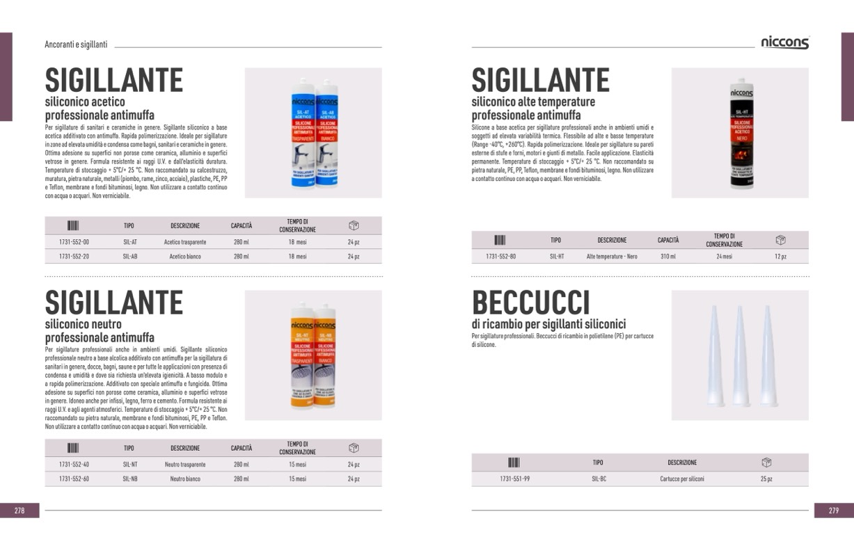 (Range -40°C, +260°C). Rapida polimerizzazione. Ideale per sigillature su pareti