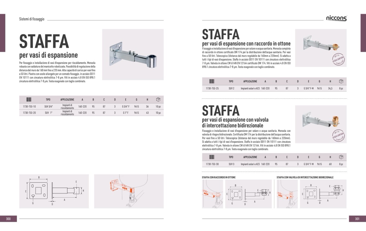 Si adatta a tutti i tipi di vasi d’espansione. Staffa in acciaio DD11 EN 10111 con zincatura