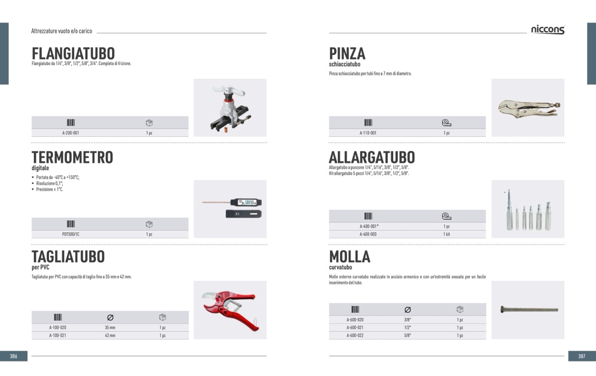 Allargatubo a punzone 1/4”, 5/16”, 3/8”, 1/2”, 5/8”.