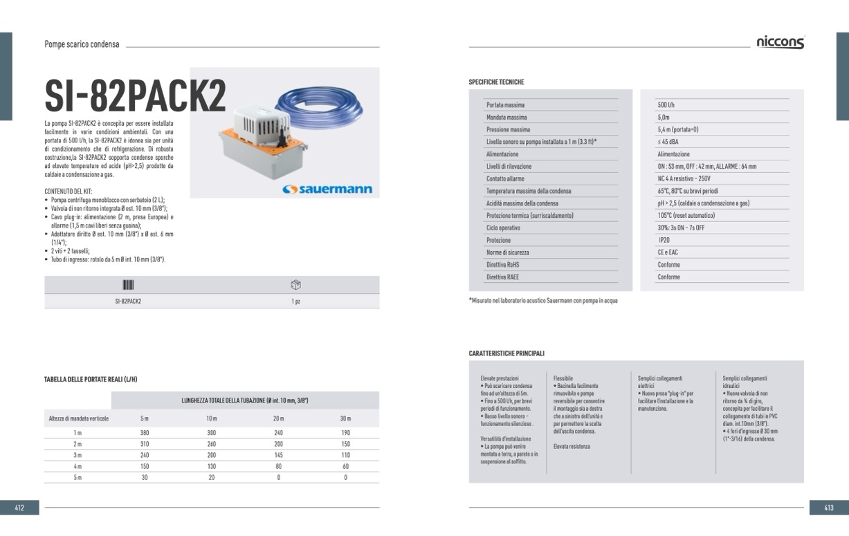portata di 500 l/h, la SI-82PACK2 è idonea sia per unità