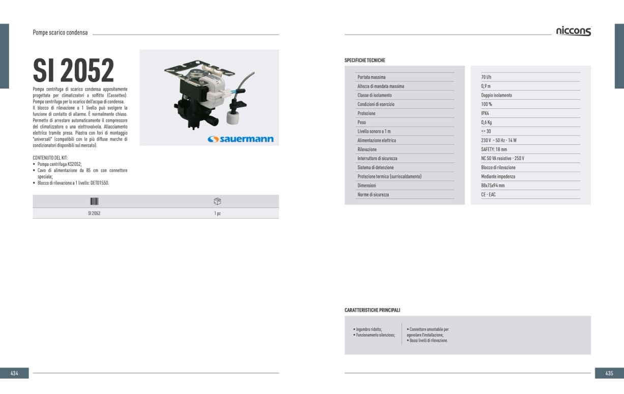 Pompa centrifuga per lo scarico dell’acqua di condensa.