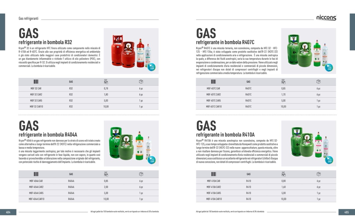 refrigerazione commerciale a media temperatura. La bombola è ricaricabile.