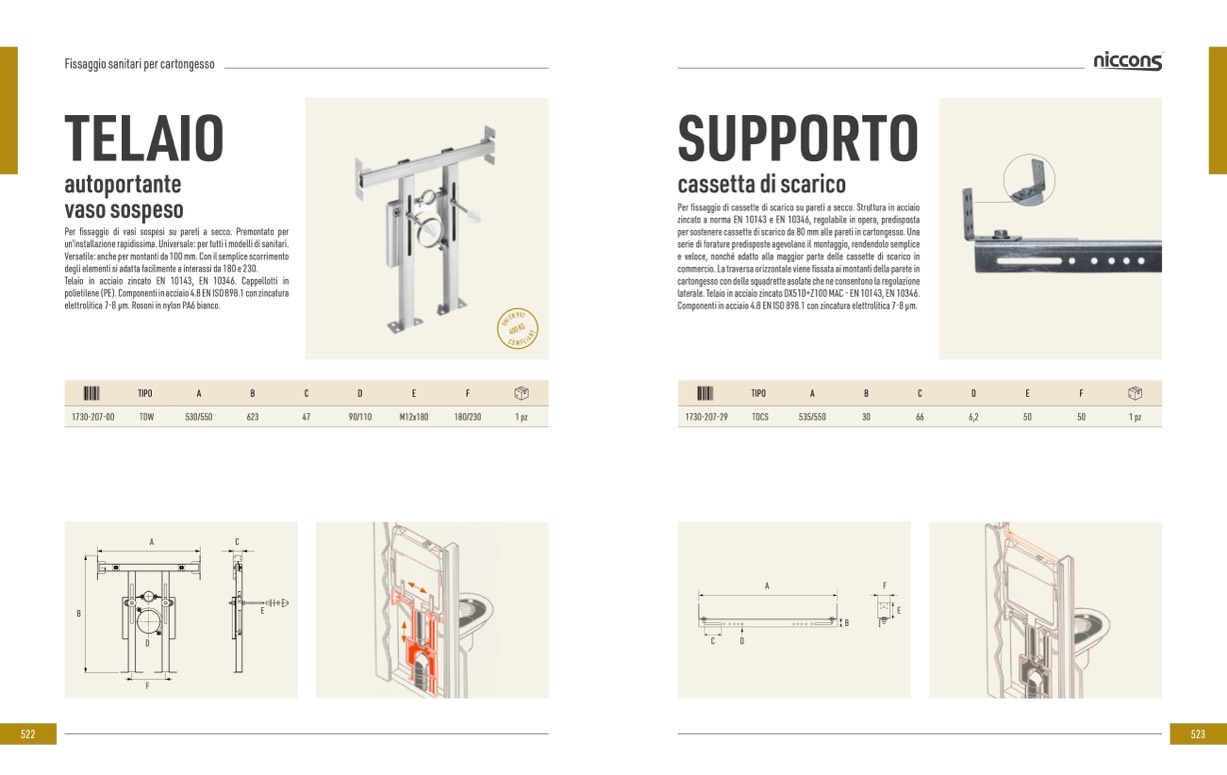 Per fissaggio di cassette di scarico su pareti a secco. Struttura in acciaio