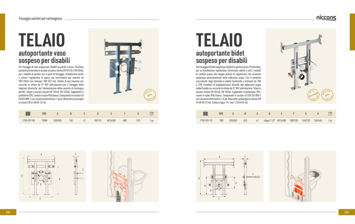 del WC. Telaio in acciaio zincato EN 10143, EN 10346. Cappellotti in