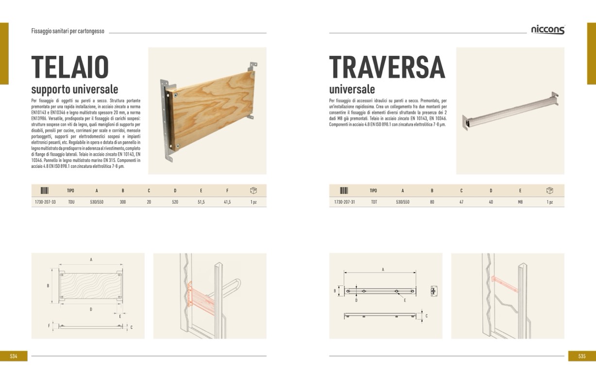Per fissaggio di oggetti su pareti a secco. Struttura portante