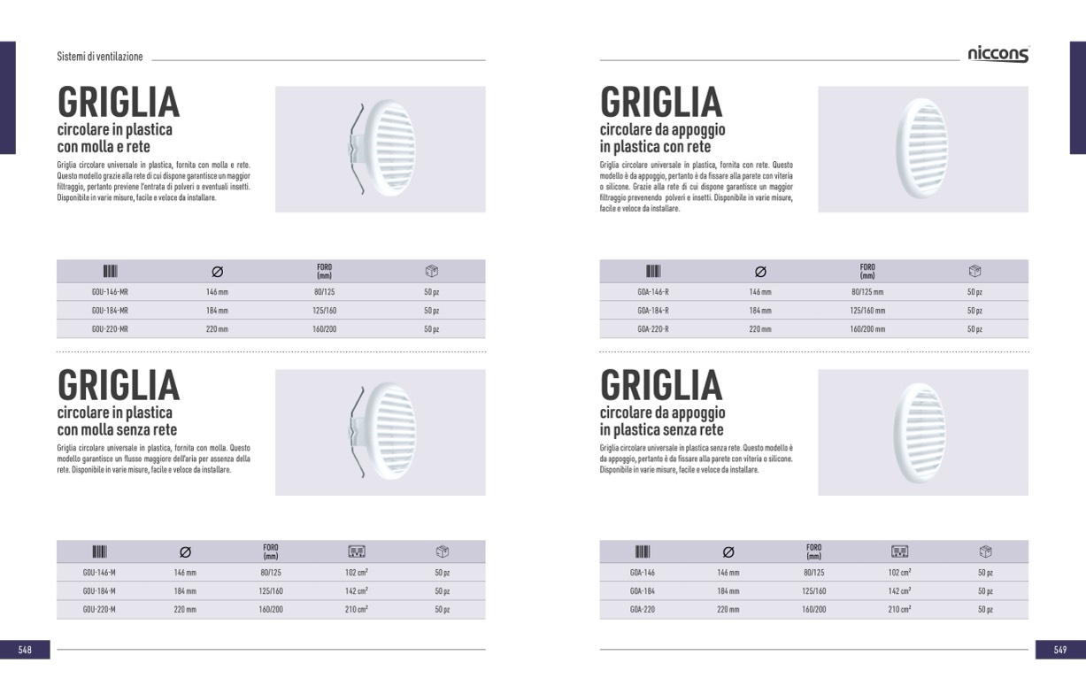 Griglia circolare universale in plastica, fornita con rete. Questo