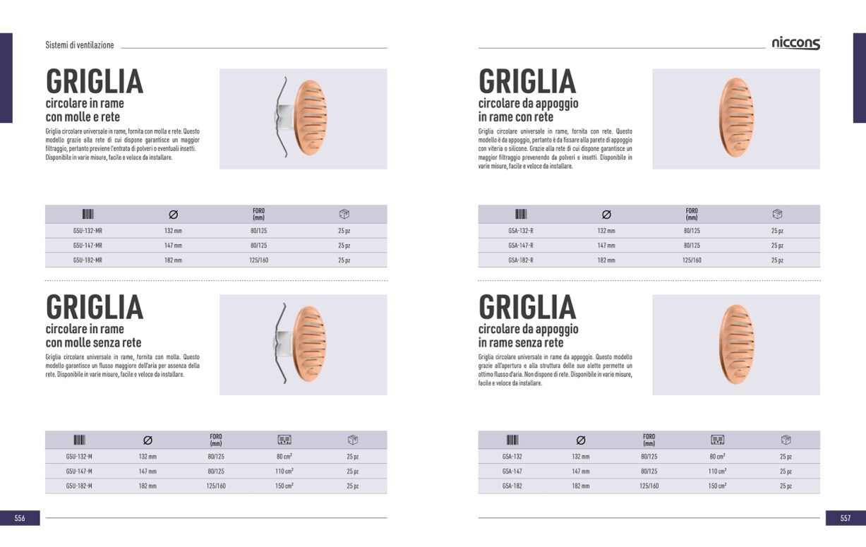 ottimo flusso d’aria. Non dispone di rete. Disponibile in varie misure,