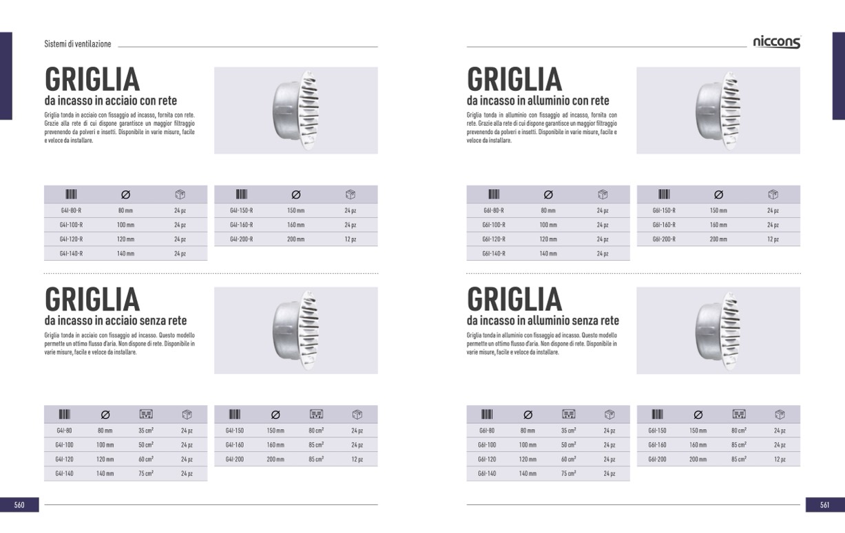 Griglia tonda in alluminio con fissaggio ad incasso. Questo modello